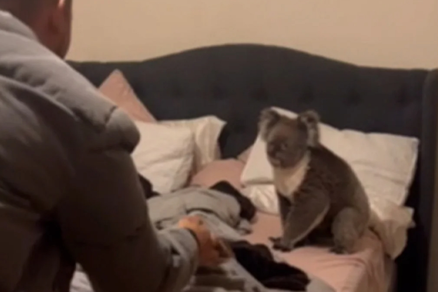 Μια μεγάλη έκπληξη περίμενε ένα ζευγάρι όταν γύρισε στο σπίτι του στην Αδελαΐδα: ένα κοάλα είχε τρυπώσει στο υπνοδωμάτιό τους.