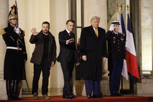 Η τριμερής συνάντηση του Γάλλου προέδρου Εμανουέλ Μακρόν, του εκλεγέντος προέδρου των ΗΠΑ Ντόναλντ Τραμπ και του προέδρου της Ουκρανίας Βολοντιμίρ Ζελένσκι έγινε στο Ελιζέ, λίγο πριν τα θυρανοίξια της Notre Dame.