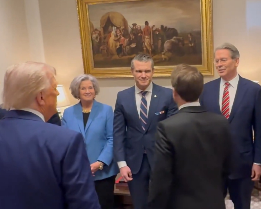 Αίσθηση προκαλούν τα χαμόγελα και η συζήτηση που είχαν Μακρόν - Τραμπ με τον Πιτ Χέγκσεθ υπουργό Άμυνας των ΗΠΑ. Και εκεί δεν έλειψαν τα γέλια και τα πειράγματα.