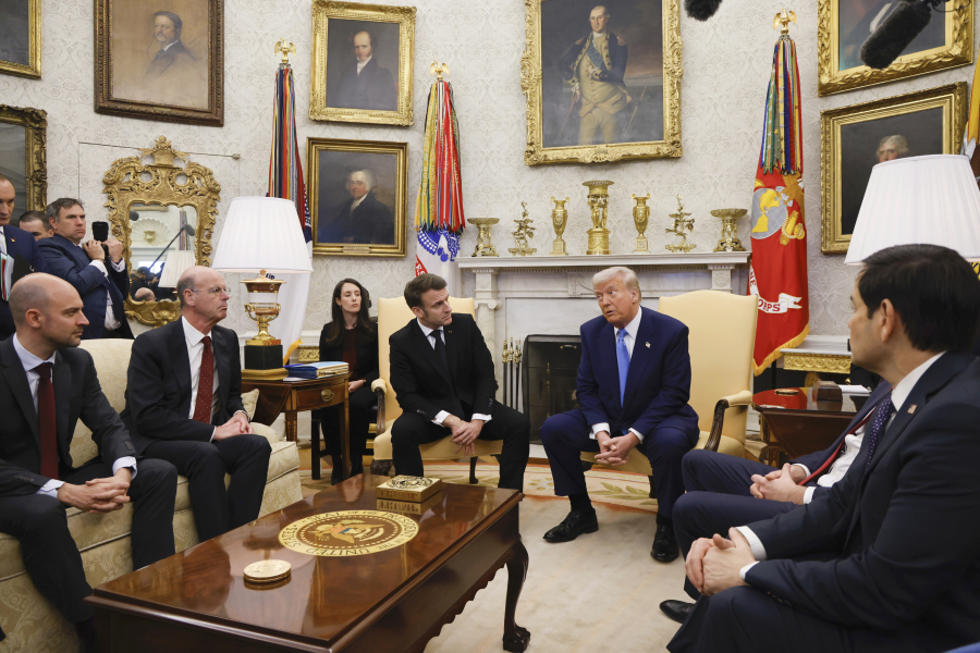 Ο Μακρόν, φροντίζοντας να μην προκαλέσει τον Τραμπ, ξεκαθάρισε ότι η Ρωσία ευθύνεται για τον πόλεμο, όχι η Ουκρανία, και διόρθωσε τους ισχυρισμούς του προέδρου σχετικά με την ευρωπαϊκή βοήθεια.