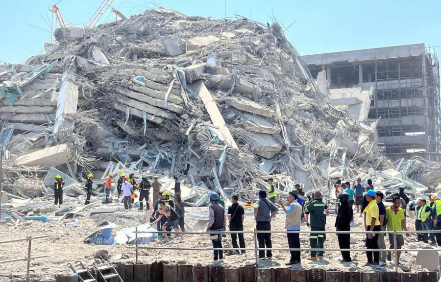 Στην Μπανγκόκ, σε απόσταση 1.000 χιλιομέτρων από το επίκεντρο, μία αποστολή διάσωσης ενέτεινε σήμερα τις προσπάθειές της να βρει εργάτες που εγκλωβίστηκαν κάτω από τα ερείπια ενός 33ώροφου πύργου που κατέρρευσε.