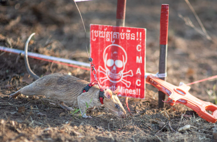 Έπειτα από δύο δεκαετίες εμφυλίου πολέμου, που τερματίστηκε το 1998, στην Καμπότζη υπολογίζεται ότι υπάρχουν ακόμα 4-6 εκατομμύρια νάρκες. Η Apopo, η έδρα της οποίας είναι στην Τανζανία, έχει αυτή τη στιγμή 104 τρωκτικά ή HeroRATS (αρουραίοι ήρωες), που εντοπίζουν νάρκες και πυρομαχικά.