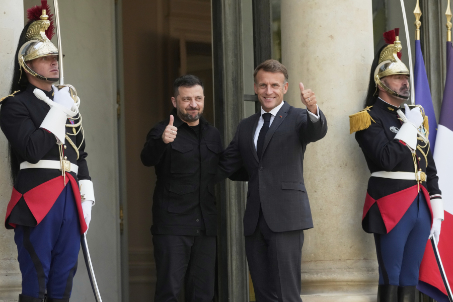 Καλωσορίζοντας τον Ζελένσκι χθες το βράδυ, ο Μακρόν ανακοίνωσε ότι η Ευρώπη είναι επιτέλους έτοιμη να παράσχει τις εγγυήσεις.