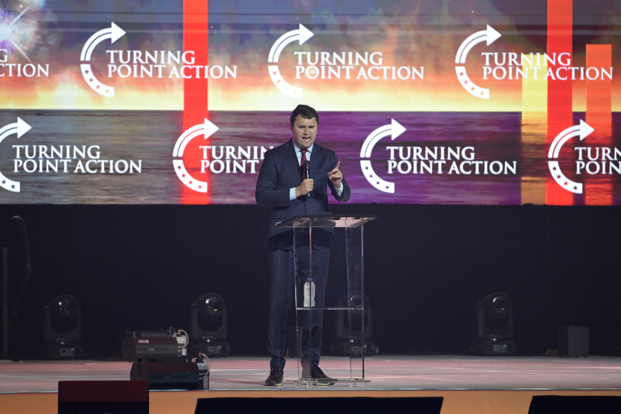Σε μια συγκέντρωση την παραμονή της ορκωμοσίας του, ο Τραμπ εξήρε τον Κερκ και τον «στρατό των νέων» του.