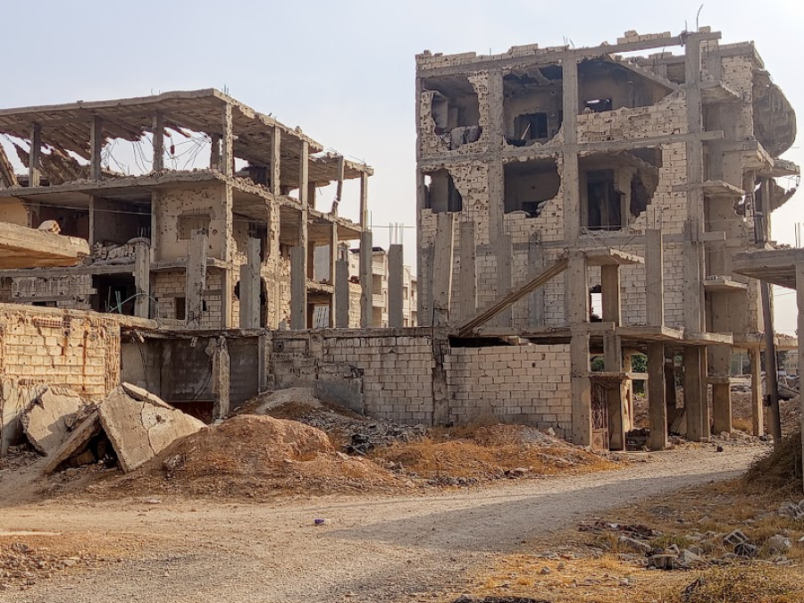 Μέσα από τα βομβαρδισμένα κτίρια προβάλλει η Τουρκική σημαία. Αυτή η εικόνα θα μπορούσαμε να αντιμετωπιστεί ως σύμβολο της σχέσης της Συρίας με την Τουρκία. Από τη μια μεριά, μια καθημαγμένη και κατακερματισμένη χώρα που πρέπει να βρει το δρόμο της επανενοποίησης και της ανασυγκρότησής της. Από την άλλη, μια περιφερειακή δύναμη που διεκδικεί ρόλο επικυρίαρχου στην αδύναμη γειτονική χώρα της και λειτουργεί διαλυτρικά.