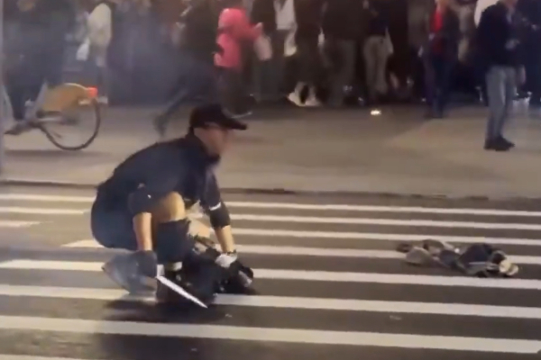 Το βίντεο τον δείχνει να βγάζει χειροβομβίδες καπνού από μια τσάντα στη μέση του δρόμου και να τις πετάει πρόχειρα προς τα πλήθη που έχουν συγκεντρωθεί στο πεζοδρόμιο, διατηρώντας κάποια απόσταση. Στη συνέχεια, φαίνεται να τρέχει απέναντι από τον δρόμο και να μπαίνει σε ένα εμπορικό κέντρο, μαχαιρώνοντας τυχαία ανθρώπους καθώς τρέχει.