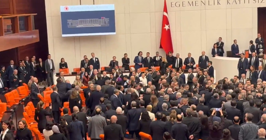 Όταν ο βουλευτής CHP Αλί Μαχίρ Μπασαρίρ διαμαρτυρήθηκε, η ένταση μεταξύ των βουλευτών του AK και του CHP κλιμακώθηκε και από τα λόγια πέρασαν στην... πράξη με σπρωξίματα και γροθιές.