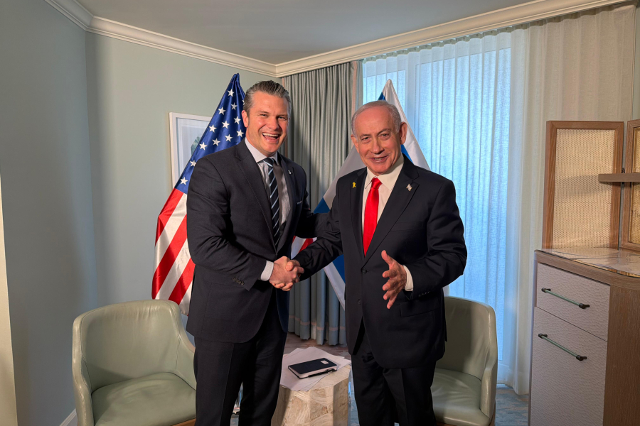Εικόνες που δημοσίευσε ο Νετανιάχου δείχνουν την εγκάρδια συνάντηση μεταξύ Χέγκσεθ και Νετανιάχου με τους δυο τους να χαμογελούν και να σφίγγουν το χέρι ο ένας του άλλου. Μια άλλη φωτογραφία τους δείχνει να κάθονται δίπλα σε άλλους αξιωματούχους.