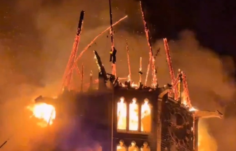 Ο πύργος ύψους 50 μέτρων κατέρρευσε και η στέγη υπέστη σοβαρές ζημιές, σύμφωνα με τις αρχές του Άμστερνταμ.