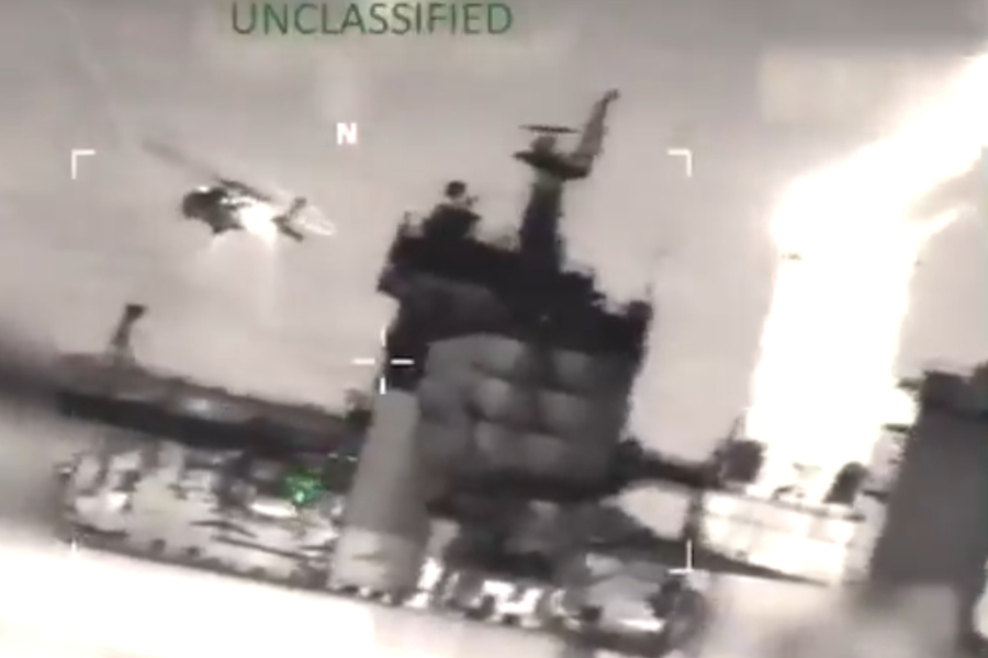 Το ρωσικό κρατικό ραδιοτηλεοπτικό δίκτυο RT δημοσίευσε αρχικά δύο κοκκώδεις φωτογραφίες που δείχνουν ένα ελικόπτερο να πλησιάζει το δεξαμενόπλοιο, λέγοντας ότι βρίσκεται σε εξέλιξη μια επιχείρηση. Το Reuters, επικαλούμενο δύο Αμερικανούς αξιωματούχους, επιβεβαίωσε επίσης ότι οι ΗΠΑ προσπαθούσαν να επιβιβαστούν στο πλοίο.
