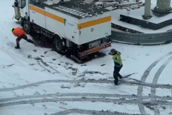 Ένας ταξιδιώτης βρισκόταν στο αεροδρόμιο όταν θέλησε να βγάλει εικόνες και βίντεο από το χιονισμένο τοπίο. Την ίδια στιγμή δύο εργαζόμενοι ενθουσιασμένοι από το χιόνι άρχισαν να παίζουν χιονοπόλεμο και ο φακός τους απαθανάτισε.