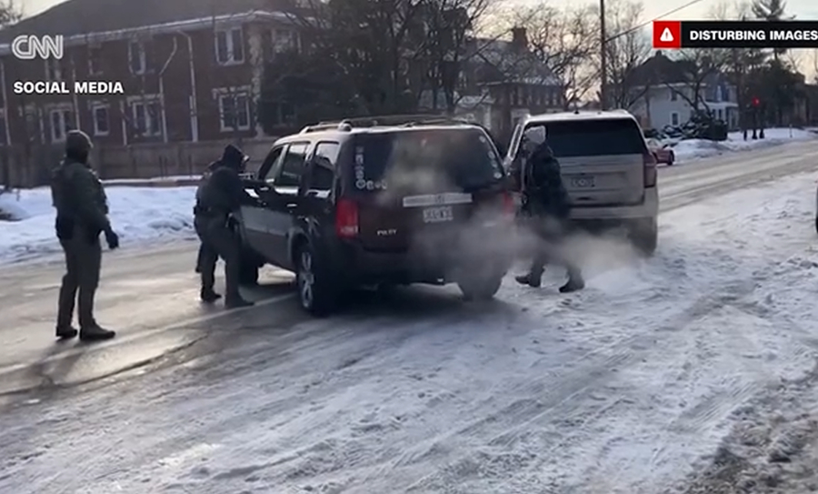 Κάποιος άλλος πράκτορας ακούγεται να λέει στην Γκουντ: «Βγες από το γαμ@@@νο αυτοκίνητο». Η 37χρονη κάνει όπισθεν και στη συνέχεια να κινείται προς τα μπροστά, στρίβοντας δεξιά το τιμόνι της, δηλαδή στην αντίθετη πλευρά από το σημείο όπου στεκόταν ο πράκτορας.