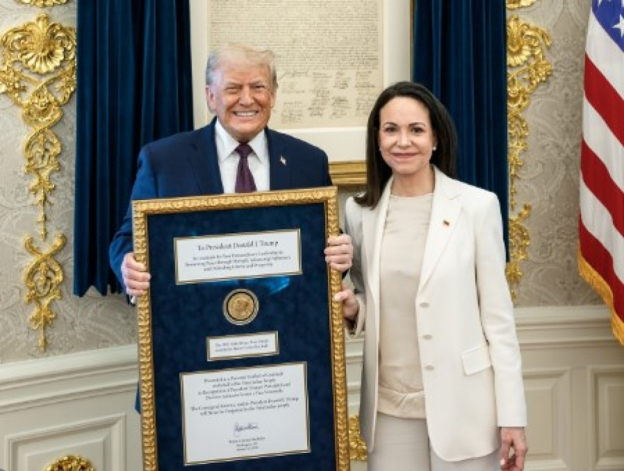 Η ασυνήθιστη χειρονομία της Ματσάδο ήρθε σχεδόν δύο εβδομάδες μετά την έναρξη μιας μεγάλης κλίμακας στρατιωτικής επίθεσης των ΗΠΑ εναντίον της Βενεζουέλας και τη σύλληψη του προέδρου της χώρας Νικολάς Μαδούρο και της συζύγου του.