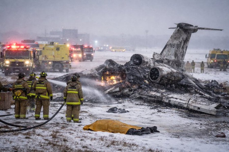 Το δικινητήριο αεροσκάφος τύπου Bombardier Challenger 650 κατέπεσε κατά τη διάρκεια της απογείωσης από το διεθνές αεροδρόμιο του Μπάνγκορ, ενώ αμέσως μετά τη συντριβή τυλίχθηκε στις φλόγες.