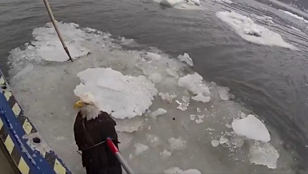 Σε βίντεο που αναρτήθηκε στο X, οι αστυνομικοί εντόπισαν έναν αετό πάνω σε ένα κομμάτι πάγου κοντά στη γέφυρα George Washington. Όπως φαίνεται, το πτηνό είναι τραυματισμένο, καθώς διακρίνονται αίματα στα φτερά του.