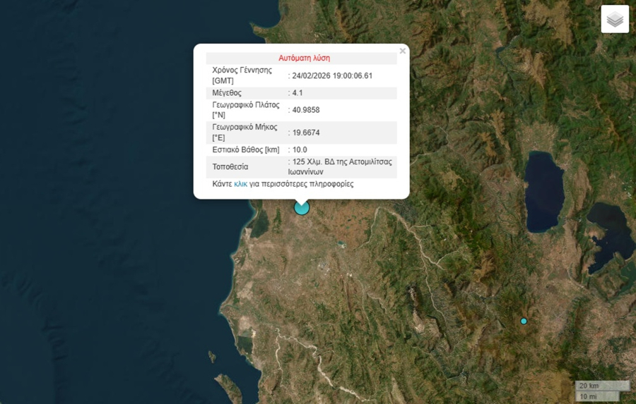 Ο σεισμός ήταν μεγέθους 4,1 Ρίχτερ, σύμφωνα με την αυτόματη λύση του Γεωδυναμικού Ινστιτούτου.