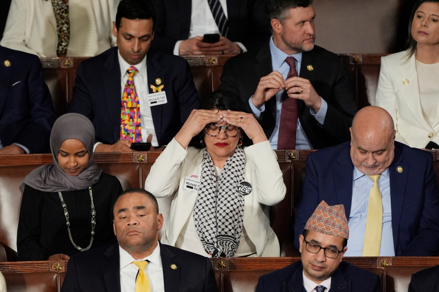 Τόσο η κ. Όμαρ όσο και η κ. Τλάιμπ φώναξαν «σκοτώνετε Αμερικανούς» απευθυνόμενες στον πρόεδρο Τραμπ κατά τη διάρκεια της ομιλίας, με την κ. Όμαρ να τον κατηγορεί επίσης πως είναι «ψεύτης».