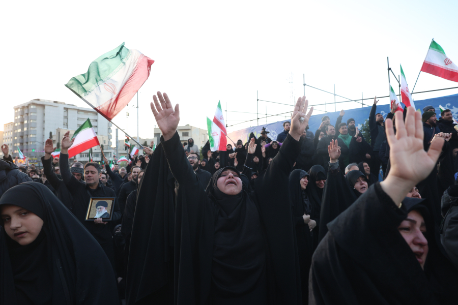 Οι περισσότεροι ντυμένοι στα μαύρα, κάποιοι κλαίγοντας και κρατώντας πορτρέτα του αγιατολάχ που κατέχει από το 1989 το υψηλότερο αξίωμα στο Ιράν, φώναζαν "Θάνατος στην Αμερική!", "Θάνατος στο Ισραήλ!" ανάμεσα σε σημαίες της Ισλαμικής Δημοκρατίας.