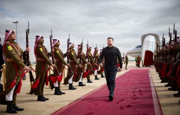 Ο Ουκρανός πρόεδρος Βολοντίμιρ Ζελένσκι έφθασε σήμερα στην Ιορδανία στο πλαίσιο περιοδείας του σε χώρες του Κόλπου με στόχο να ενισχύσει τους αμυντικούς δεσμούς της χώρας του με χώρες της περιοχής εν μέσω των αυξανόμενων εντάσεων λόγω του πολέμου στο Ιράν.