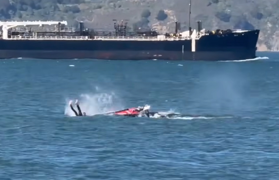 Κάμερα κατέγραψε μια σπάνια σύγκρουση στον κόλπο του Σαν Φρανσίσκο: τη στιγμή που σέρφερ συγκρούστηκε με φάλαινα.