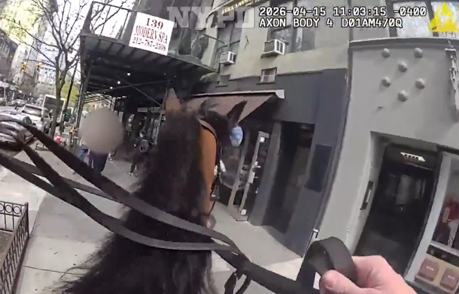 Έφιππος αστυνομικός που βρισκόταν σε περιπολία αντιλήφθηκε το συμβάν και άρχισε να καταδιώκει την δράστιδα, με το άλογο ράτσας Στάνταρμπρεντ να διασχίζει τους πολυσύχνατους δρόμους της Νέας Υόρκης.