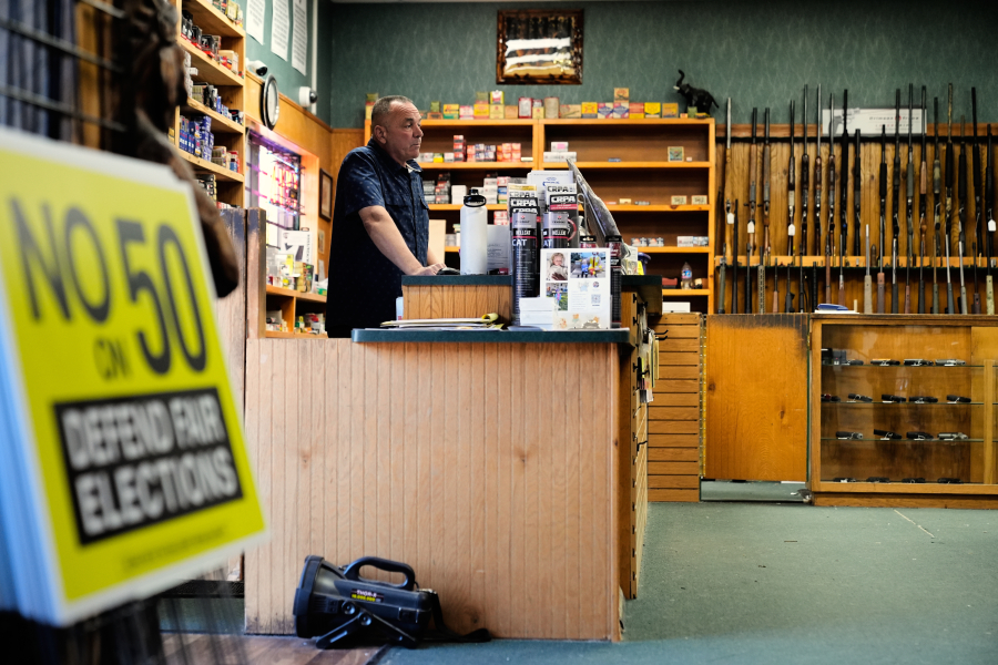 Το ημιαυτόματο πιστόλι που κρατά είναι το πρώτο του όπλο. Το αγόρασε πρόσφατα, όπως και άλλοι αριστεροί Αμερικανοί. Αιτία; Ο φόβος απέναντι στην κυβέρνηση Τραμπ, όπως αναφέρουν.