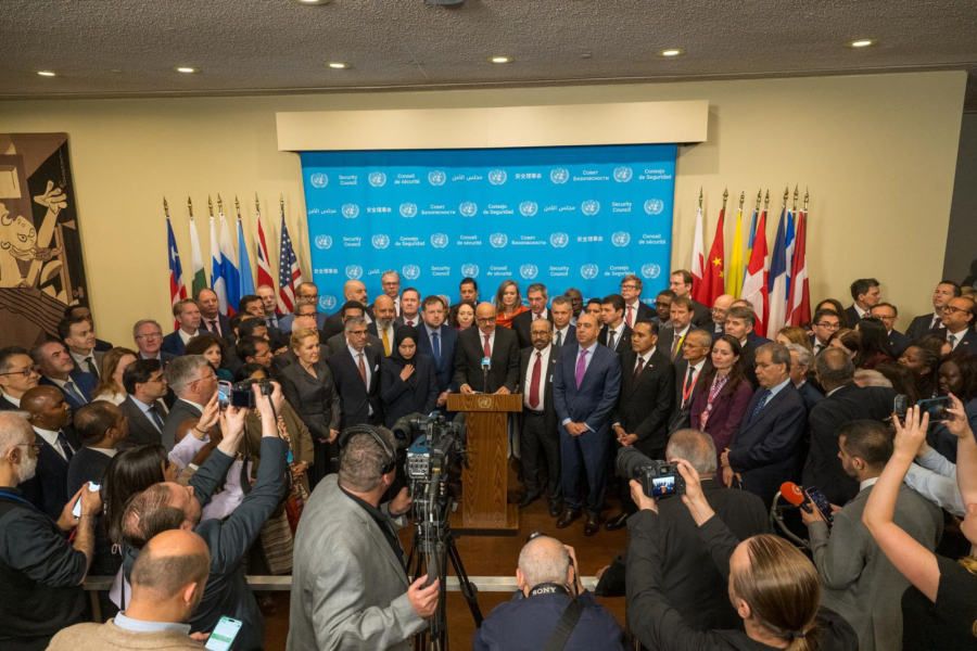 Την κοινή δήλωσε εκφώνησε ο υπουργός Εξωτερικών του Μπαχρέιν Αμπντουλατίφ μπιν Ρασίντ αλ Ζαγιάνι, στην έδρα του ΟΗΕ στη Νέα Υόρκη.