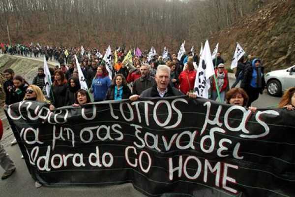 Κινητοποίηση στην Ιερισσό κατά της εξόρυξης χρυσού Μήνυμα ότι ο αγώνας τους κατά της εξόρυξης χρυσού στις Σκουριές συνεχίζεται, έστειλαν από την Ιερισσό Χαλκιδικής, κάτοικοι της περιοχής-μέλη του κινήματος ενάντια στην επένδυση χρυσού. Πραγματοποίησαν αρχικά συγκέντρωση στο κέντρο της Ιερισσού και στη συνέχεια σχημάτισαν ανθρώπινη αλυσίδα, η οποία –σύμφωνα με τους συμμετέχοντες- ξεπέρασε σε μήκος το 1 χλμ.