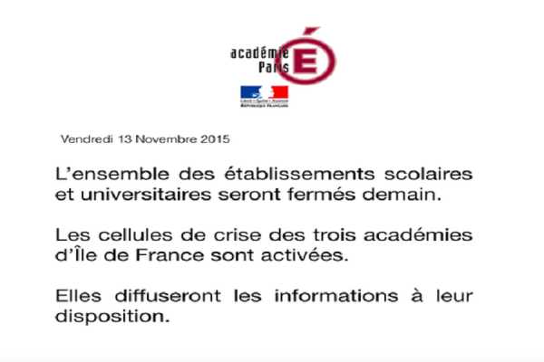 Οι σχολικές εκδρομές συμφωνα με το Ipaideia.gr ακυρώνονται, εστιατόρια και πανεπιστημιακές βιβλιοθήκες είναι κλειστά σήμερα. "Αυτά είναι μέτρα τα οποία περιορίζονται προς το παρόν σε Ile-de-France, λέει ο περίγυρός του Najat Vallaud-Belkacem. Η απόφαση αυτή ήταν φυσικά σε συντονισμό με το Elysée ".