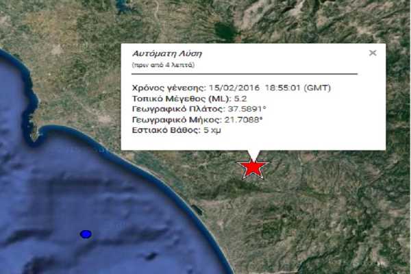 Σύμφωνα με την αυτόματη μέτρηση του Γεωδυναμικού Ινστιτούτου του Αστεροσκοπείου Αθηνών, η δόνηση είχε μέγεθος βαθμών 5,2 της κλίμακας Ρίχτερ και το επίκεντρο εντοπίστηκε κοντά στα Κρέστενα της Ηλείας.