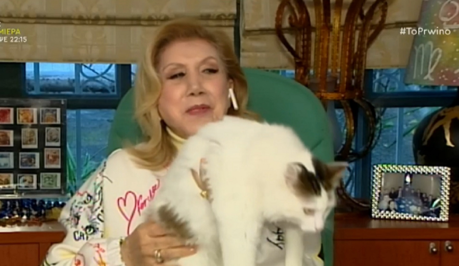 Η γνωστή αστρολόγος βγήκε στον αέρα της εκπομπής «Πρωινό» παρέα με την γάτα της τον Μπρούνο.