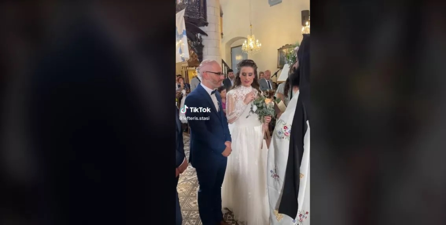 Η κίνηση της νύφης προκάλεσε ρίγη συγκίνησης σε όλους καθώς κατά τη διάρκεια του μυστηρίου μετέφερε στη νοηματική γλώσσα τα λόγια του ιερέα προς τον σύζυγο της.