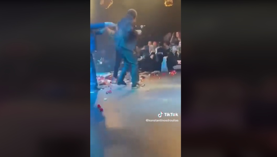 Εκείνη την ώρα λοιπόν ένας θαμώνας που βρισκόταν στην αριστερή πλευρά του τραγουδιστή, ανέβηκε μανουριασμένος στην πίστα και επιτέθηκε στον Αντύπα, φτάνοντας στο σημείο να τον χτυπήσει κιόλας.
