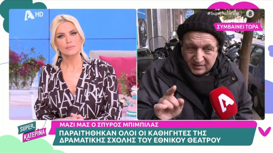 «Θέλω να διευκρινίσω ότι δεν ήξερα ότι θα γίνει αυτή η ζωντανή σύνδεση έξω από το σπίτι μου, γιατί έχω πει όχι σε όλα τα κανάλια. Επομένως το να είστε έξω από το σπίτι μου δεν είναι με την δική μου έγκριση. Με πετύχατε εσείς, για να μην συμβεί παρανόηση με τα άλλα κανάλια», είπε αρχικά ο Σπύρος Μπιμπίλας