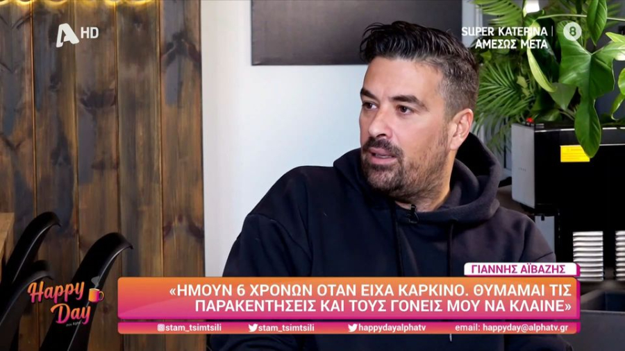 Ο Γιάννης Αϊβάζης έδωσε συνέντευξη στο Happy Day και την Όλγα Λαφαζάνη. Ο ηθοποιός μίλησε, μεταξύ άλλων, και για την μάχη του με τον καρκίνο όταν ήταν μικρό παιδί.