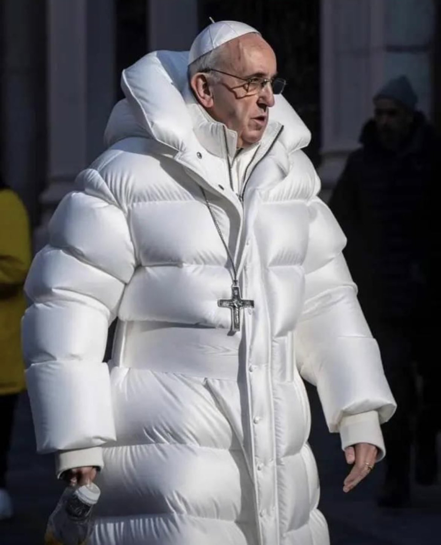 Εκατοντάδες χιλιάδες άτομα στα social media αναπαρήγαγαν την εικόνα και έκαναν χιουμοριστικά σχόλια για τις ενδυματολογικές επιλογές του ποντίφικα.