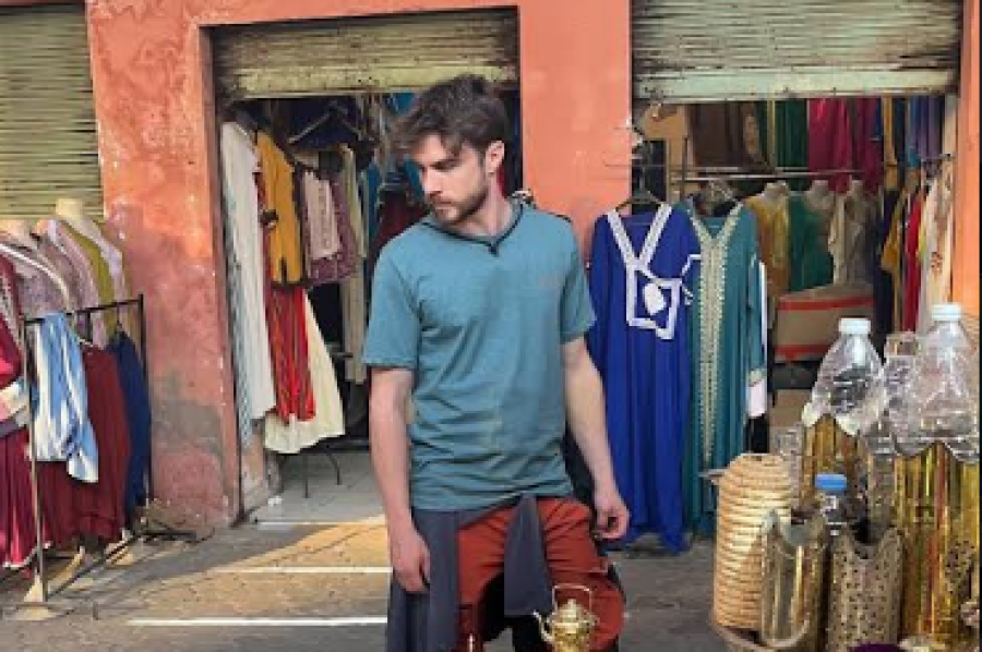 Με ένα «τουκ τουκ», ένα τρίκυκλο με σκεπαστή καρότσα σαν από άλλη δεκαετία, με ντόπιο οδηγό, η ομάδα μεταφέρθηκε, σε μια περιπετειώδη μετακίνηση, στην καρδιά της Μεντίνα. Πάνω στο όχημα 7 άτομα και σακ βουαγιάζ με τα ρούχα των ηθοποιών, μεταφέρθηκαν στο χώρο του γυρίσματος. Σε στενά δρομάκια πλάτους 2,5 μέτρων, με τα μαγαζιά δεξιά κι αριστερά να απλώνουν την πραμάτεια τους, με κόσμο, με ποδήλατα, μηχανάκια, ανθρώπους που έσερναν καρότσια, να έρχονται από την αντίθετη μεριά, κάθε δευτερόλεπτο ήταν μια περιπέτεια, σαν σε ταινία του Τζέιμς Μποντ.