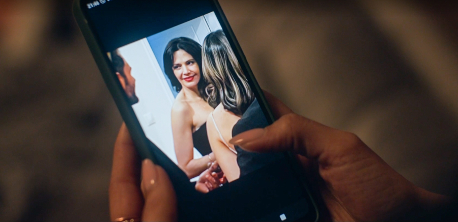 Η Μάγια ανοίγει το κινητό του Άγη και βρίσκει κάποιες φωτογραφίες της Μαρίνας από το πάρτι.