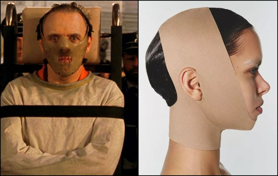 Η μάσκα που καλύπτει σαγόνι, λαιμό και αυτιά θυμίζει πράγματι εκπληκτικά το διάσημο «αξεσουάρ» του Χάνιμπαλ Λέκτερ από την εμβληματική ταινία Η σιωπή των αμνών (1991).