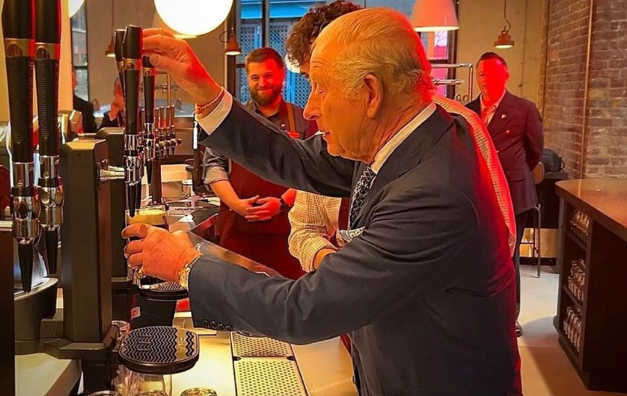 Σήμερα, Πέμπτη 18 Δεκεμβρίου, ο Βασιλιάς Κάρολος, έκανε την έκπληξη και δοκίμασε τις ικανότητές του πίσω από το μπαρ ενώ προσπάθησε να σερβίρει την τέλεια μπίρα κατά την επίσκεψή του στο άνοιγμα του νέου Guinness Open Gate Brewery στο Λονδίνο.