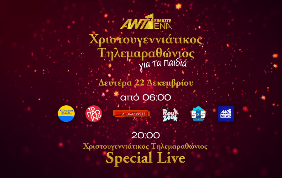 «ΕΙΜΑΣΤΕ ΕΝΑ» – ΧΡΙΣΤΟΥΓΕΝΝΙΑΤΙΚΟΣ ΤΗΛΕΜΑΡΑΘΩΝΙΟΣ ΑΝΤ1 ΓΙΑ ΤΑ ΠΑΙΔΙΑ ΔΕΥΤΕΡΑ 22 ΔΕΚΕΜΒΡΙΟΥ.