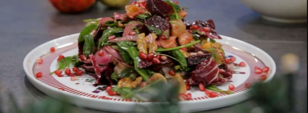 Η Πρωτοχρονιά θέλει πιάτα που συνδυάζουν καλή τύχη, θρεπτική αξία και εντυπωσιακή εμφάνιση. Τα παντζάρια, με το βαθύ κόκκινο χρώμα τους, συμβολίζουν την ευημερία, ενώ το ρόδι σύμβολο αφθονίας και καλοτυχίας δίνει στη σαλάτα μια γιορτινή πινελιά. Ο Βαγγέλης Δρίσκας μας προτείνει μια σαλάτα που τα έχει όλα ψητά παντζάρια, ζουμερούς σπόρους ροδιού, τραγανά καρύδια και μυρωδάτα φρέσκα βότανα. Ένα πιάτο που εντυπωσιάζει στο μάτι και χορταίνει στον ουρανίσκο.