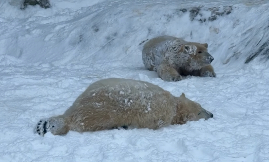 Τα ζώα δεν σταμάτησαν να παίζουν, να κυνηγιούνται και να κυλιούνται στο χιόνι, ενώ δεν παρέλειψαν να κάνουν βουτιές και στη λίμνη που βρίσκεται στον χώρο τους, όπως φαίνεται σε βίντεο που ανάρτησε ο ζωολογικός κήπος.