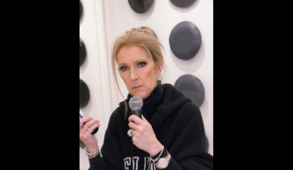 Η Σελίν Ντιόν βγάζει ένα μικρόφωνο, «σε περίπτωση που γίνει κάτι και κάποιος μου ζητήσει να τραγουδήσω “Happy Birthday”, είμαι έτοιμη», λέει.