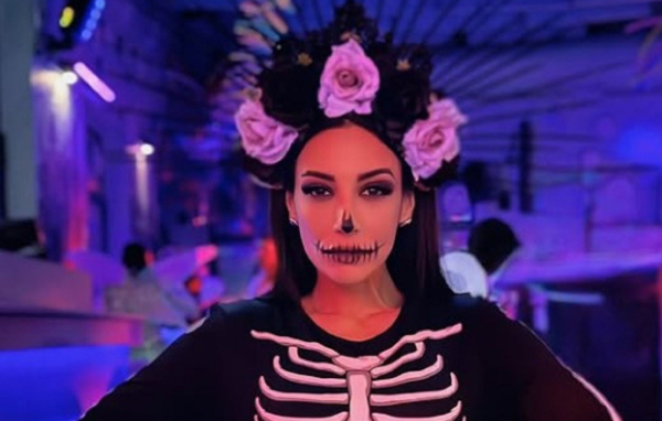 Ειδικότερα, το βράδυ της Δευτέρας 16 Φεβρουαρίου, η ηθοποιός, βρέθηκε σε πάρτι μεταμφιεσμένος όπου και έδωσε το παρών ντυμένη σκελετός.