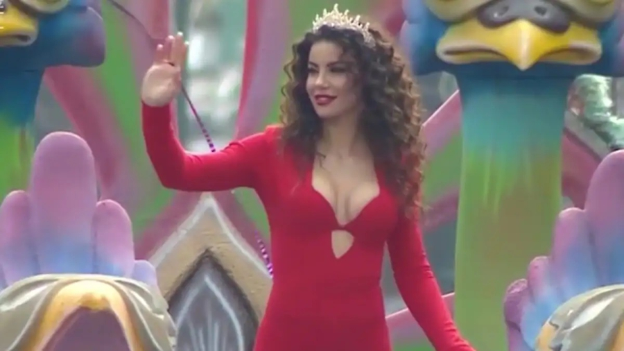 Η γνωστή τραγουδίστρια φόρεσε ένα εντυπωσιακό κόκκινο κορμάκι και έδειχνε να απολαμβάνει τη συμμετοχή της στο ξανθιώτικο καρναβάλι.