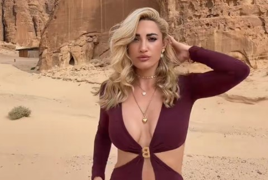 Στο βίντεο η influencer ποζάρει με ένα εφαρμοστό φόρεμα σε έρημο της Σαουδικής Αραβίας, όπου προόσφατα ταξίδεψε με τον σύντροφό της.