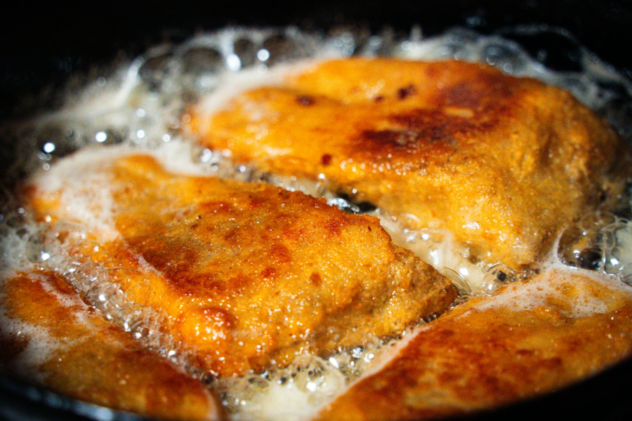 Τηγανίζουμε τα φιλέτα, μέχρι να πάρουν ωραίο και έντονο χρώμα. Bγάζοντάς τα προσεκτικά από το λάδι με μια κουτάλα-αράχνη τα κρατάμε για λίγο πάνω από το τηγάνι, ώστε να στραγγίξουν. Τα βάζουμε σε σκεύος στρωμένο με απορροφητικό χαρτί.