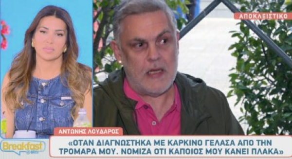 Στο Breakfast@Star και τον Ηλία Σκουλά μίλησε ο Αντώνης Λουδάρος. Ο γνωστός ηθοποιός αναφέρθηκε σε μια από τις πιο δύσκολες στιγμές της ζωής του όταν διαγνώσθηκε με καρκίνο, αλλά και για την ιδιαίτερη σχέση που είχε με την αείμνηστη Μαρινέλλα.