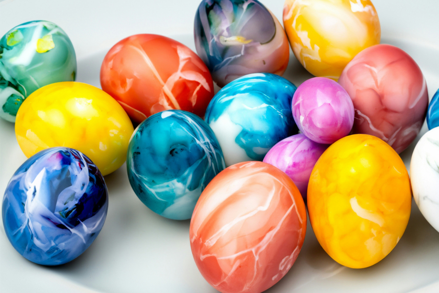 Για να βάψετε τα πασχαλινά αυγά με αυτόν τον τρόπο επιλέξτε πρώτα τι χρώμα θέλετε. Για να είναι πιο εντυπωσιακά επιλέξτε διάφορα χρώματα- αλλά όχι πολλά ταυτόχρονα γιατί σε μία τέτοια περίπτωση τα αυγά σας θα βγουν μουντά.